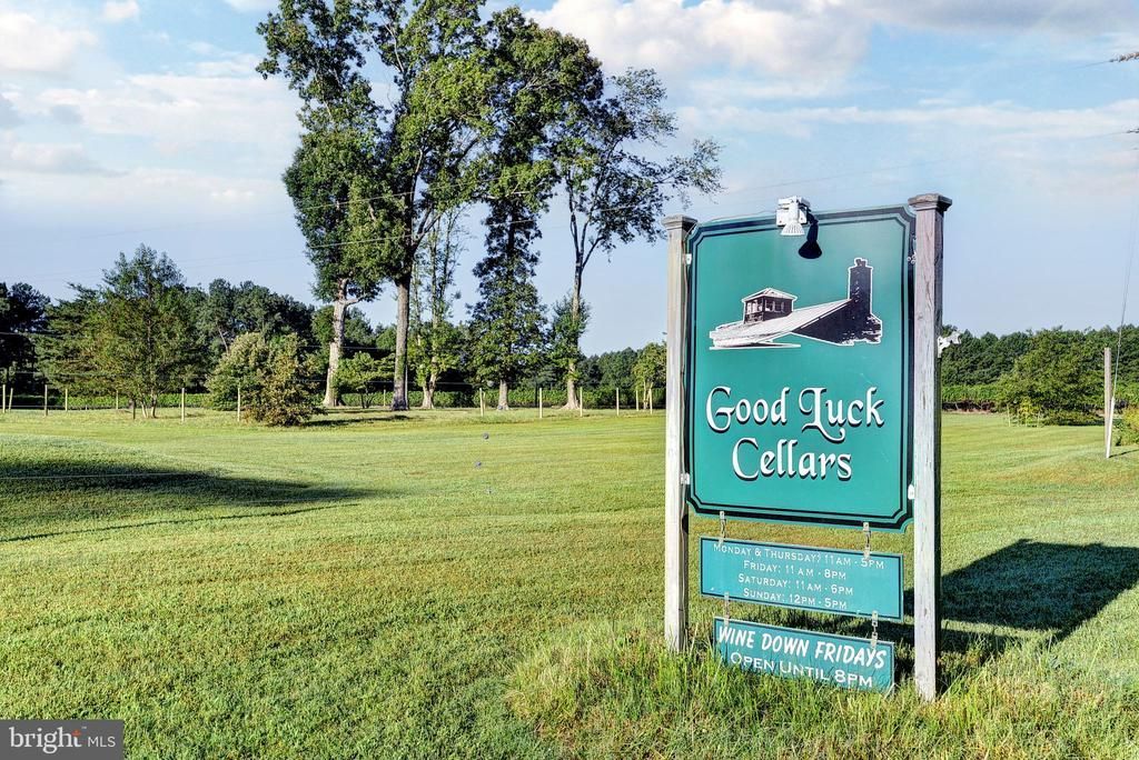 Good Luck Cellars, in Kilmarnock, Virginia is one of the premier wineries and event venues on the Northern Neck of Virginia and the entire Chesapeake Bay Wine Region. The vineyard is set upon a vast pastoral landscape which is bordered by Norris Prong and features several water features and ponds. Good Luck Cellars is a gathering place which draws from the communities of Kilmarnock, Irvington, White Stone, Tappahannock, Wicomico Church, Reedville, Urbanna, Gloucester, Mathews, Williamsburg and beyond. It is not uncommon to find patrons from Virginia Beach, Richmond, Northern Virginia and beyond. As a gathering place for friends, family, weddings, celebrations and for relaxing afternoons on the veranda, "Good Luck" has established itself as one of the premier wineries and event venues in Eastern Virginia. There is always something going on at Good Luck Cellars. The vineyard encompasses 25 acres of well cultivated vines, including: Petit Verdot - 4ac, Voignier - 2ac, Chardonel - 4ac, Cabernet Sauvignon - 3ac, Vidal Blanc - 1ac, Vignoles - 2ac, Traminetts - 1ac, Cabernet Franc - 1ac, Chambourcin - 1ac, Seyval Blanc - 1ac, Norton - 4ac, Chardonnay - 1ac. The offering of Good Luck Cellars for Purchase is a Turn-Key Offering. Winery, Tasting Room, Wine Production Building with Garage, Office and 2 br apartment encompasses 11,800 sq. ft, with a Tractor and Farm Equipment Building encompassing 1,860 Sq. Ft. GLC's West Bldg encompasses 6,000+ sq. ft. with vineyard managers apartment, cold wine storage & more. 13+ vineyard dogs, (who are celebrities in their own right), patrol the vineyard day and night. Canine amenities include 4 dog condos and invisible fencing througout the vineyards. The offering of Good Luck Cellars presents the buying opportunity of a lifetime to purchase a turn-key, award winning winery on the highly sought after Northern Neck of Virginia. Offering includes all winery and business related furnishings, fixtures, and equipment. Wine Inventory not included.