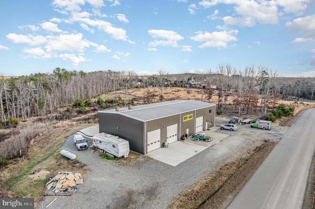 Prime Business Opportunity Close to Lake Anna and off of Rt 208 main roadway. Excellent 7500 Sq Ft Building with over 5000 Sq Ft of Warehouse/Workspace and over 1800+ Sq Ft of Office/Finished Space. This building has so much to offer! Currently used as an auto body shop, but could easily be converted into multiple businesses, warehouse use, trucking facility, office space or so much more. Reinforced concrete floors, 22 Ft Ceilings, 4 Truck Bays, Car Lift, LED Lighting, LVP and Tile Floors, Reception Area, Storage, 2 Bathrooms Including Full Owners Suite Upstairs, Multiple Offices, 400 Amp Service, 36 x 12 Pole Barn, Parking, and 1 Acre C-2 Space with Main Road Access. Less than 7 years old, this property could be used for many different business endeavors and is a great investment for a growing area close to downtown Lake Anna and minutes from the Marina.